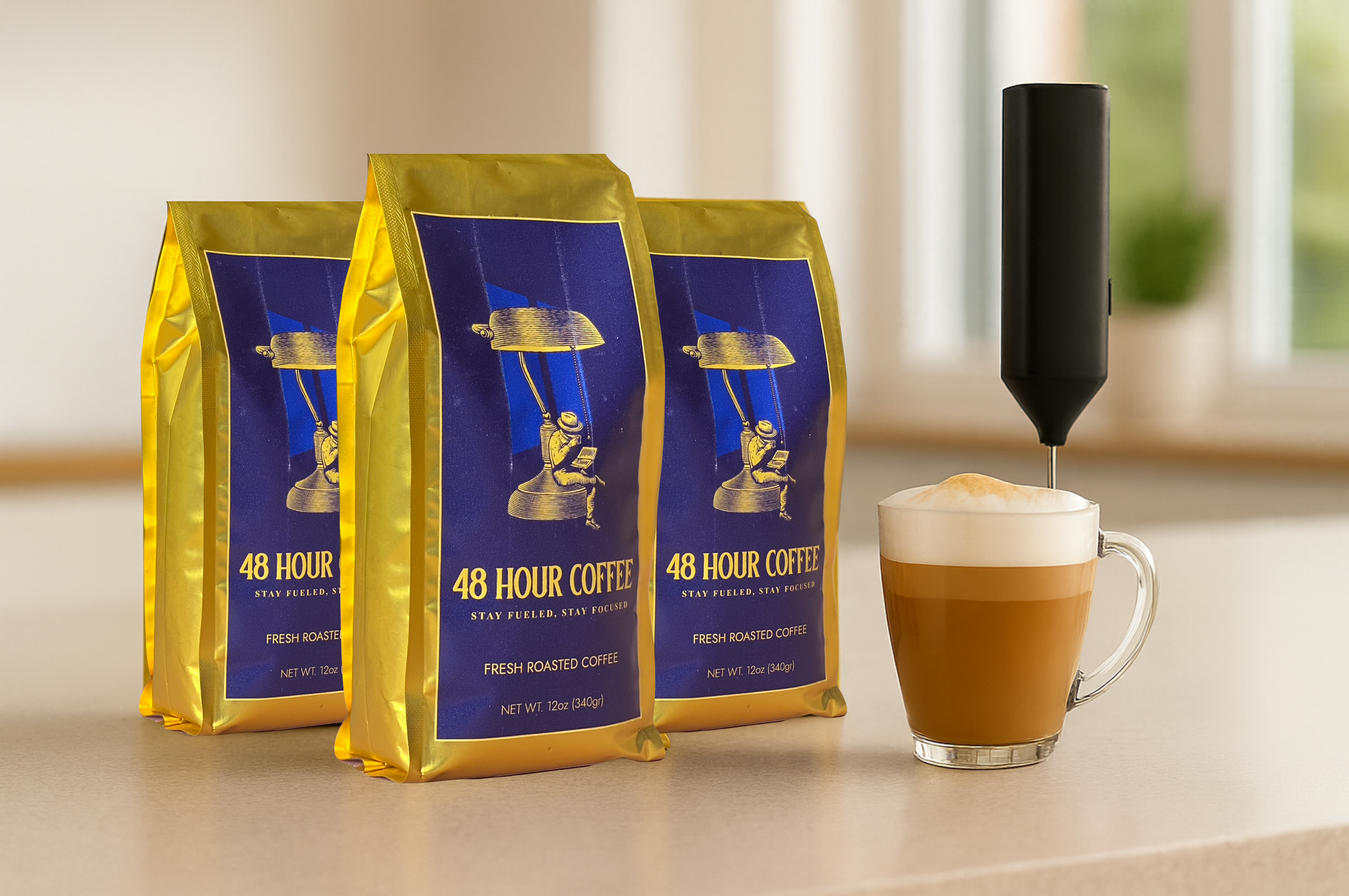 48Hour Coffee (Whole Bean) — 3 Bag Bundle + FREE Frother